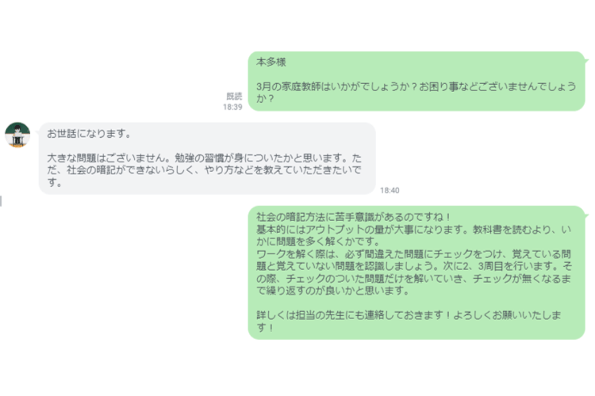 - 担当講師による返信のため、返信に時間がかかる場合がございます